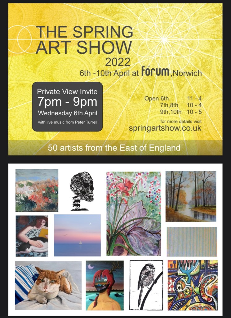 Exhibition Spring Show 6-10th of April, The Forum, Norwich, free entry, all welcome. Share this: Click to share on X (Opens in new window) X Click to share on Facebook (Opens in new window) Facebook Like Loading... Related