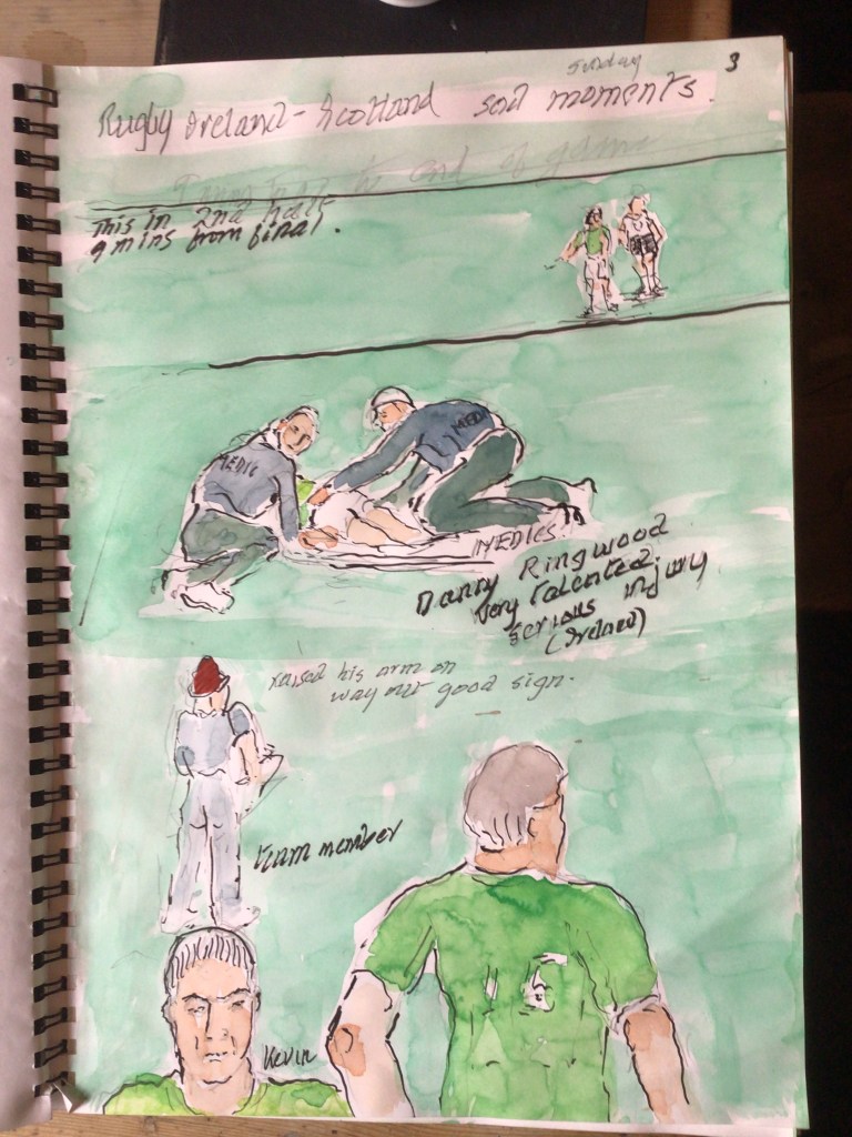 The works I am featuring in this month’s post are almost diametric opposites; female nudes drawn at the weekly Norwich 20 Group artists workshop I attend, and the physical effort of men in action, drawn from the television during the recent rugby 6 Nations.