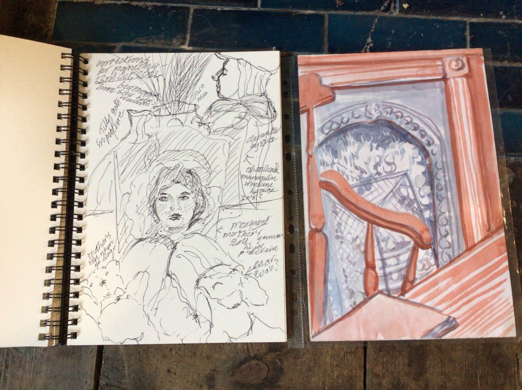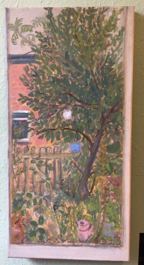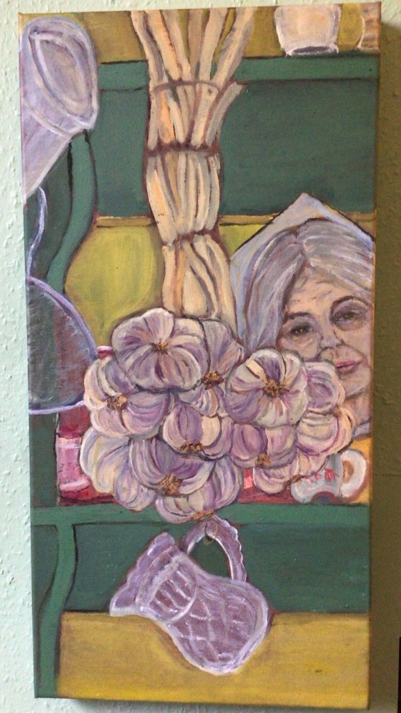 The other pieces I have been working on continue recurring themes of reflections and portals; views through windows, in mirrors; of faces, this time of a mannequin. The piece with the garlic also has my face in it; the garlic also being a recurring theme of my life and in my work.