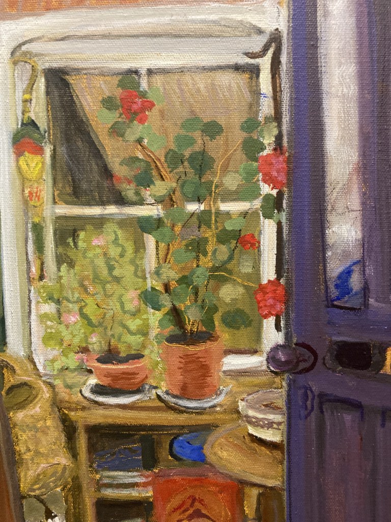 These latest paintings explores everyday thresholds-spaces where distinctions between interior and exterior, human intention and organic growth, begin to dissolve.